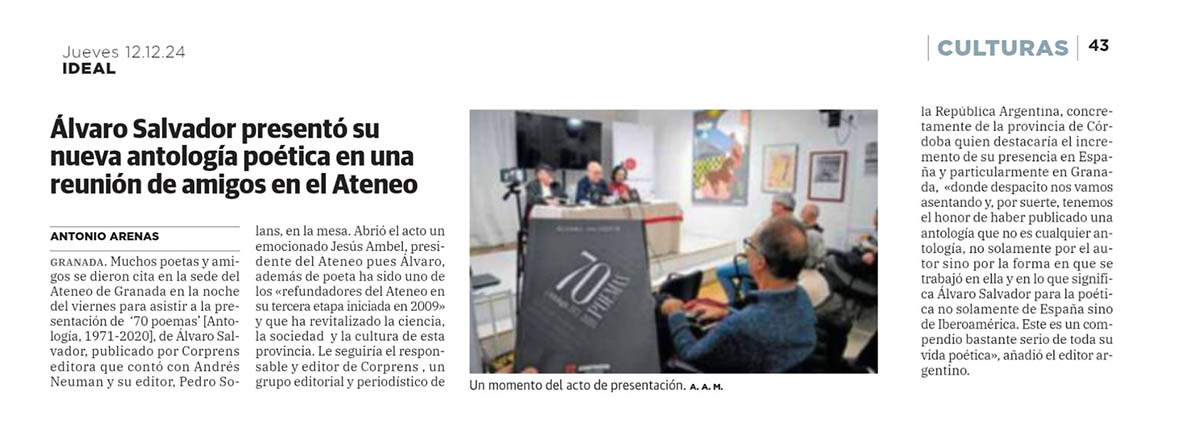 Noticia de Antonio Arenas en diario Ideal: